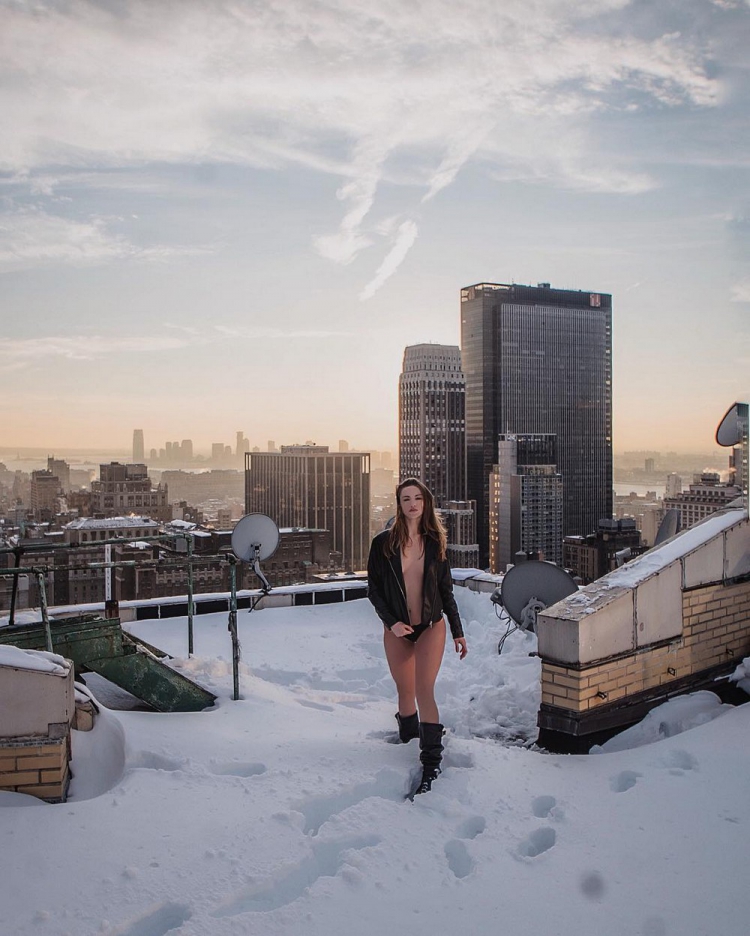 «Красавица и Нью-Йорк»(«Beauty And NYC»)– это серия карточек японского фотографа Мара Ширасуны(Mar Shirasuna), в создании коей встретили участие уже более 50 моделей, согласившихся позировать на краю кровель нью-йоркских небоскрёбов. От безбоязненности кое-каких моделей, уверенно позирующих в опасной близости от края кровли, попросту захватывает дух.