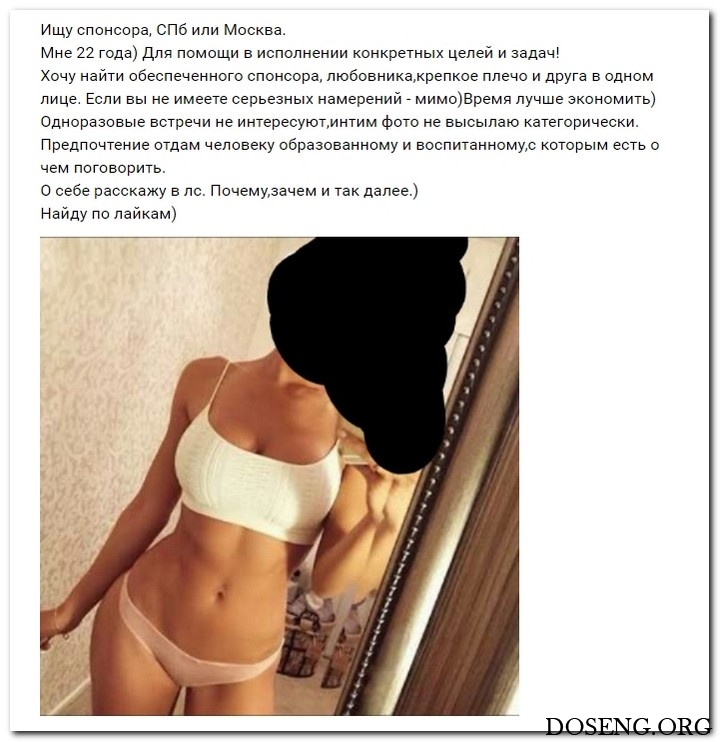 Эти наивные барышни алкают прекрасно жительствовать и ничего не ладить. Они гадают, что богатые спонсоры завидят их красу, и в очередность выстроятся, предлагая свою поддержка. Некоторые даже катают, что никого интима, им должны оплатить безукоризненно за милое общение.