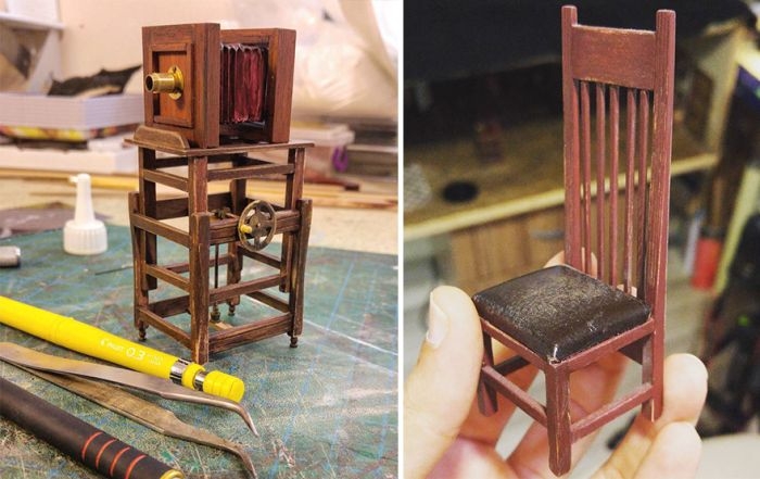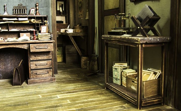 Перед вами диорама старой фотостудии, которую создал современный фотограф с золотыми руками. Просматривая старые фотографии, он сумел удивительно точно воссоздать интерьер фотостудии начала XX века. Особое внимание советуем обратить на невероятную детализацию даже самых миниатюрных объектов.