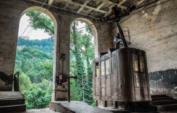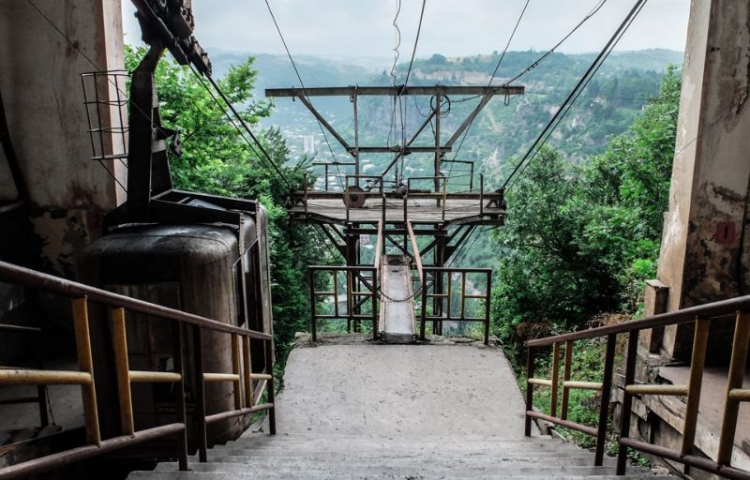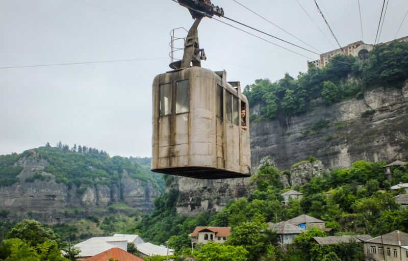В грузинском городке Чиатура в 50-х годах прошлого века была построена канатная дорога, которая доставляла рабочих из жилой зоны в горные шахты. Прошло 60 лет, а фуникулеры до сих пор функционируют. Выглядит это жутко, но работает.