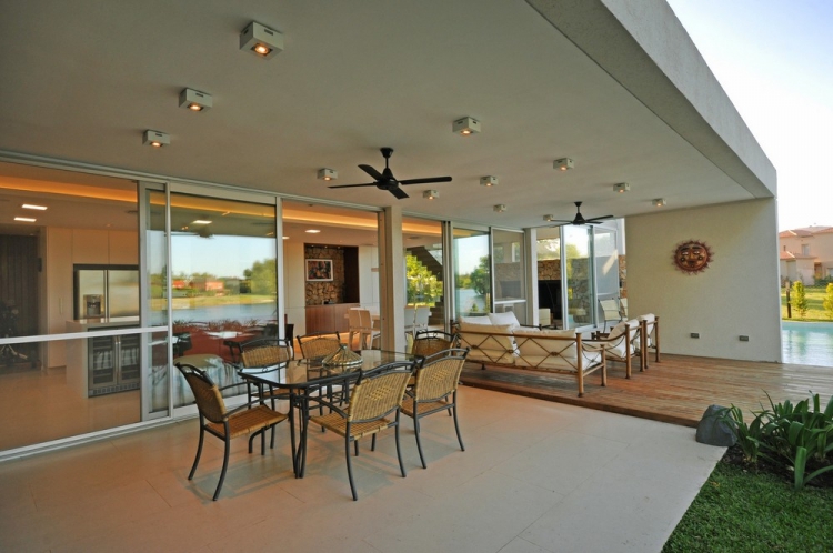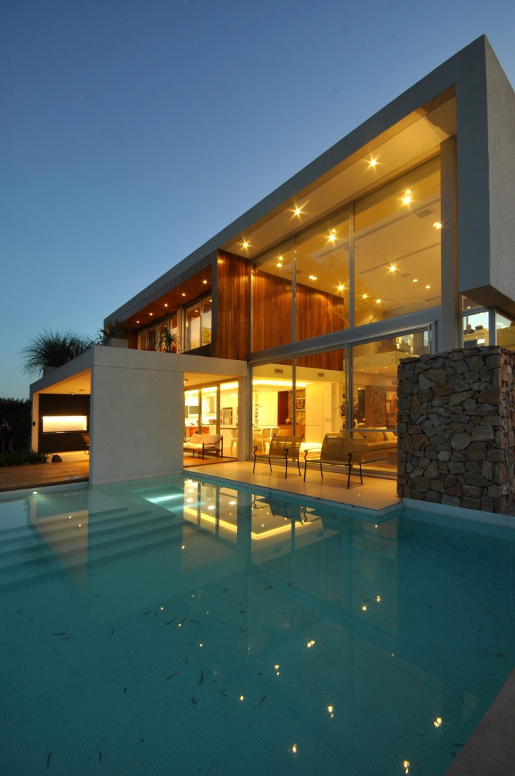 Проект резиденции Frame от архитекторов Vanguarda Architects расположен в Аргентине. Дом для постоянного проживания занимает прямоугольный участок с внутренним двориком в направлении близлежащего озера. Используя местные строительные материалы, были сформированы основные геометрические объёмы, которые стали прекрасным обрамлением для окружающего пейзажа за пределами помещения.