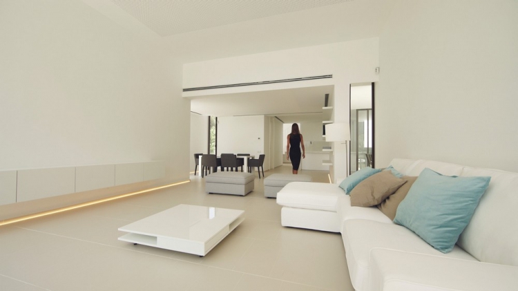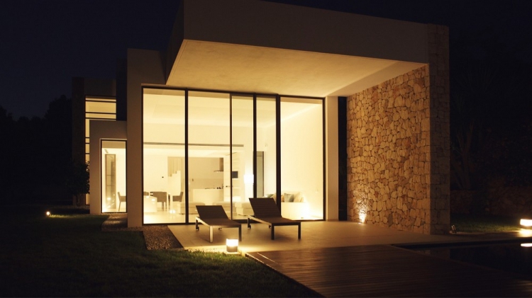 Размеры дома визуально расширяются за счёт добавления пространства сада, который служит в качестве идеального фона для виллы. Ландшафтный дизайн подчиняется той же концепции, что и конфигурация здания, следуя вытянутой форме участка и стремясь максимально вписать архитектуру в окружающий пейзаж.