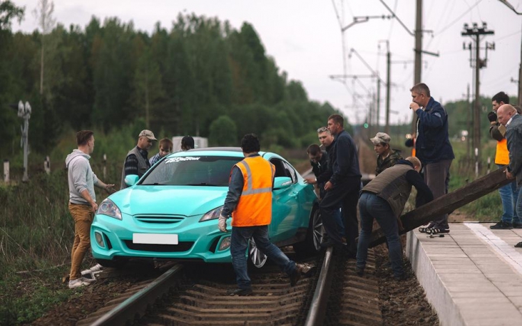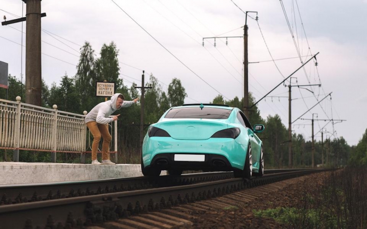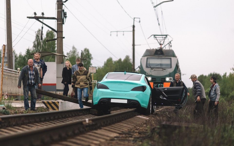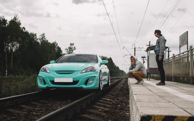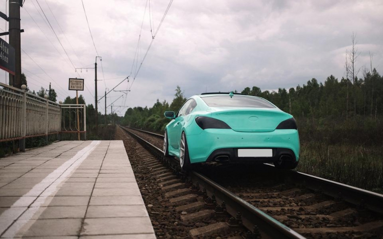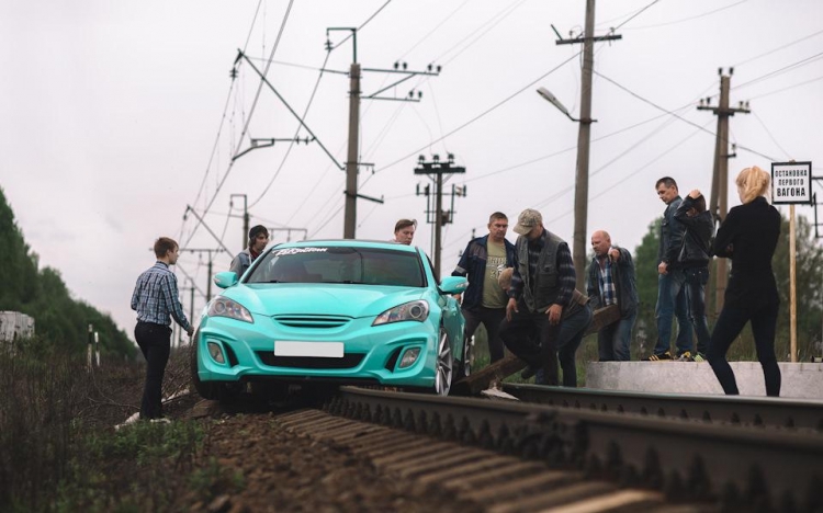 Владелец этого Hyundai Genesis Coupe решил похвастаться в сети новыми недавно приобретенными колесными дисками, но для этого выбрал не очень правильный способ. Для пущего эффекта фото, он решил поставить свою машину на рельсы.. Но после нескольких удачных фотографий что-то явно пошло не так, как планировалось, и его машина перегородила путь электричке. Как там принято говорить: "Дураки и дороги"?