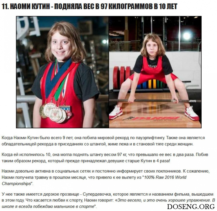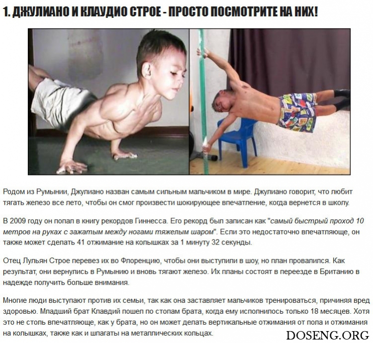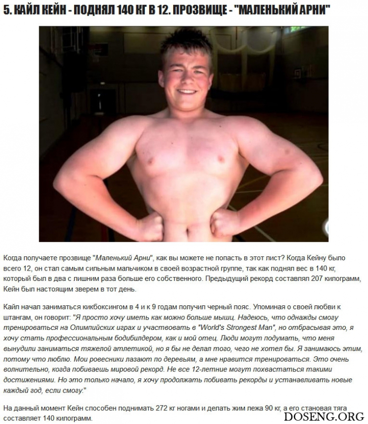 У двоих из списка есть брат или сестра, которые тоже могут называться силачами. Значит, на самом деле вы прочтете о 17 детях, которые заставят вас сожалеть о пропущенных по утрам тренировкам. У некоторых из них даже есть такие дерзкие прозвища, как Маленький Геркулес, Маленький Арни и Супердевочка!
