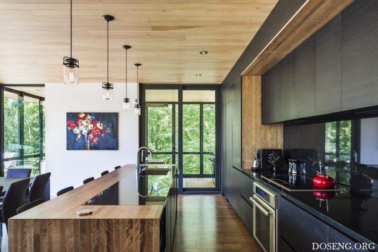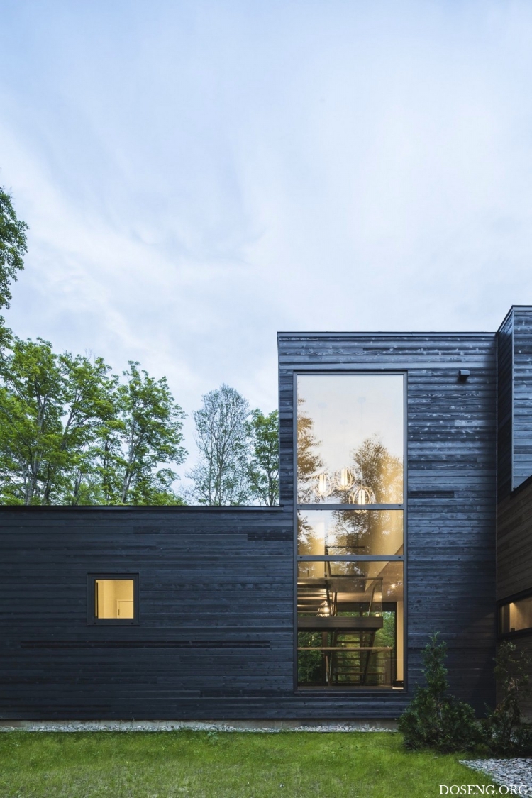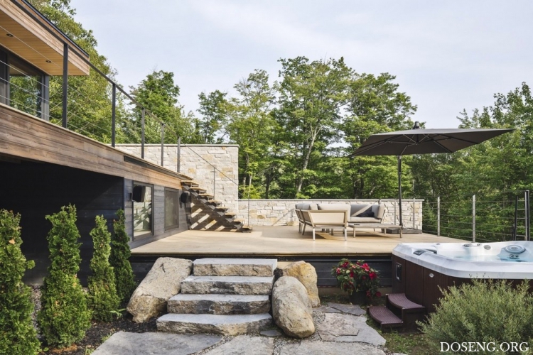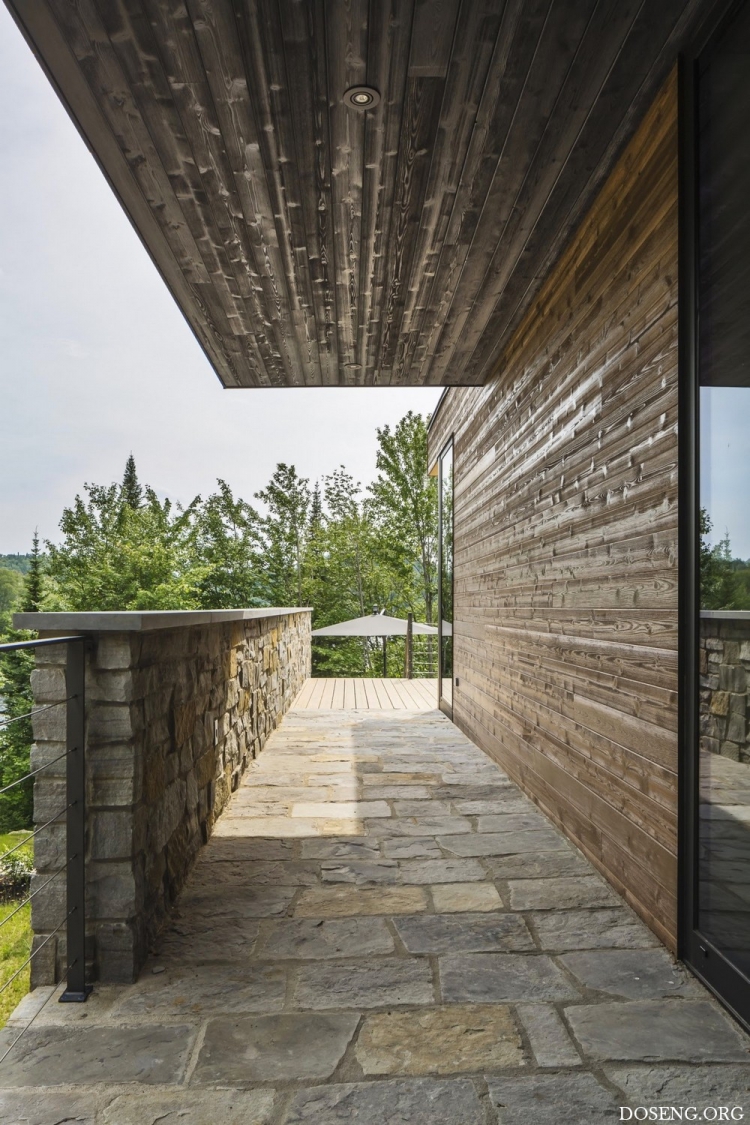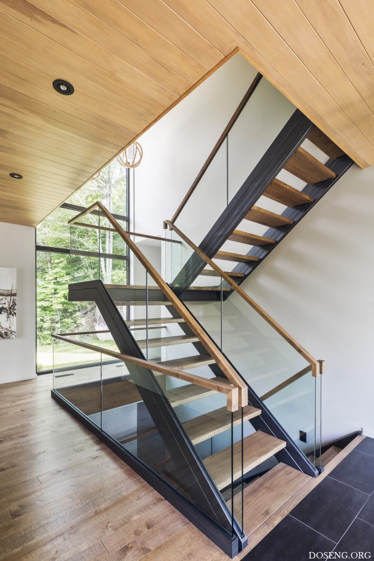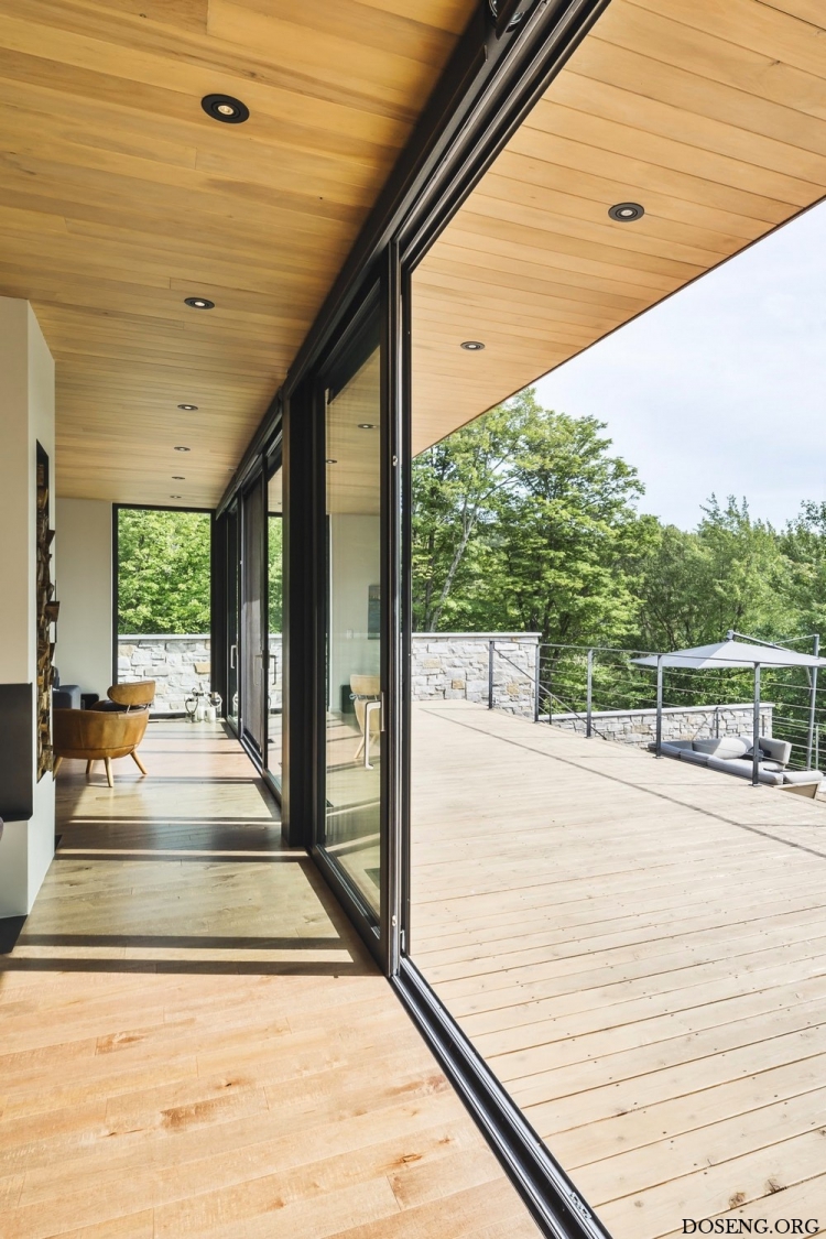 Расположенная в зелёном массиве Лаврентийских гор в Квебеке, Канада, резиденция Estrade площадью 334 квадратных метра эффектно выделяется на берегу лесного озера Кабан. Изучив крутую и скалистую топографию участка, архитекторы студии MU Architecture решили подчеркнуть особенности этого природного уголка с помощью деликатного строительного вмешательства. Главная цель заключалась в том, чтобы спроектировать дом в полной гармонии с окружающей средой.