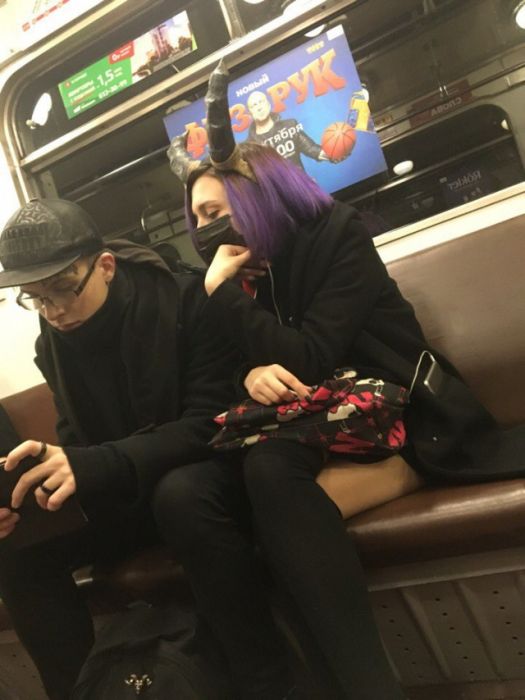 Среди огромного числа пассажиров метрополитен можно встретиться весьма забавных персонажей, какие дивят своим наружным обликом. У этих людей особое ощущение манера, позволяющее им выделиться на фоне других, чего они, судя по всему, и домогаются.