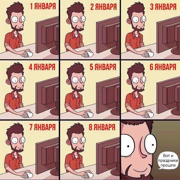 Новогодние каникулы, каких все мы настолько дожидались, подходят к капуту, а это значит, что вскоре всем нам придется вновь выйти на работу. Эта забавная подборка позволит с юмором глянуть на то, чем запомнились длительные выходные и что нас дожидается спереди.
