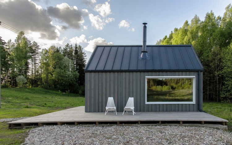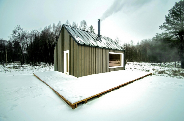 Это укрытие для охотников или дом для семейного отдыха находится на небольшом холме в глубине литовских лесов.