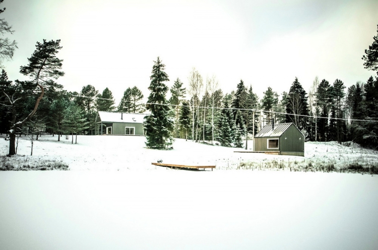 Идея проекта была в попытке влиться в образ жизни семьи с архаичной концепцией — это единение с природой и её плодами, а также обмен продуктами с близлежащими фермами. В том числе по этой причине при строительстве использованы местные материалы, а строительство осуществляли местные жители. Расположенный в верхней части участка главный дом имеет двухсветную гостиную и спальню на первом этаже, а также мансарду. Ниже у миниатюрного озера есть баня. Общий образ зданий прост и основан местной архитектуре, архетипах и традициях.