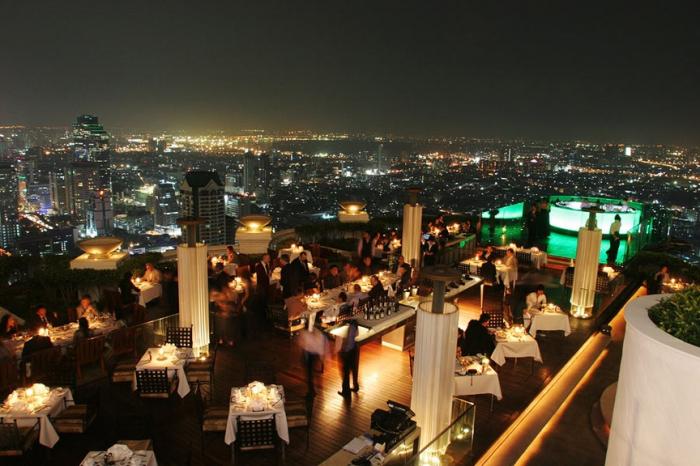 Сюда приходят не за грандиозной трапезой, а за коктейлями, какие можно потягивать с обликом на ночной Бангкок. «Скай Бар» будет на 63-м этаже Стейт?Тауэр — одного из самых возвышенных небоскребов в Юго?Восточной Азии. Круговая барная стойка с подсветкой располагается напрямик под разинутым небом. Заказав аперитив и закуски, не оставайтесь сидеть на месте, а двигайте прогуливаться с камерой по обдуваемой ветерком площадке, с коей пятерка видан тяни мегаполис.