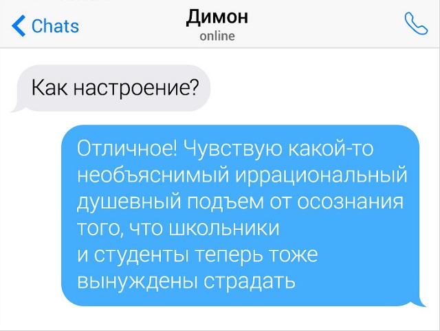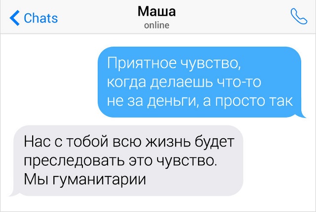 Существуют для люд, для каких переписки - это невеселый процесс. Поэтому они норовят развести подобный внешность общения чем-нибудь забавным. А в этом им помогает их велеречивость и находчивость. В итоге острословы превращают простую переписку в занимательную и забавную игру слов. Предлагаем возвысить себе надвигаться и пробежать переписки людей, какие резки и непредсказуемы в своих ответах.
