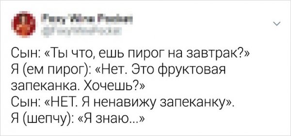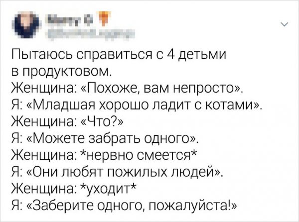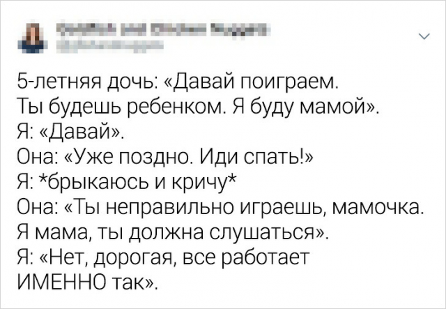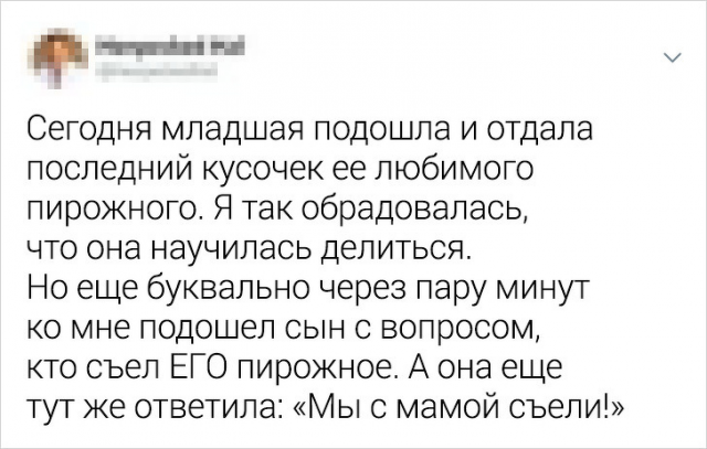 Быть родителем больно непросто.Безусловно, детвора - это цветы жизни, однако эти "цветочки" больно боготворят становить мам и пап в крайне неповоротливое поза. Да и в круглом эти крохотные шкодники не вручают расслабиться родителям. Но искушенные мамы знают, будто управиться с этими бесенятами. И в этом непростом деле им помогает юмор. Давайте посмотрим подборку забавных твитов от искушенных мам.
