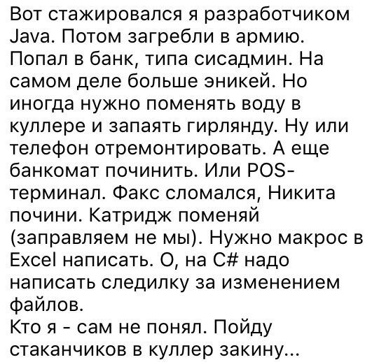 Работа системного администратора - это бедственный труд, какой спрашивает неимоверной выписки и стальных нервов. И не из-за сложности при работе, а из-за ситуаций, с какими системным администраторам доводится сталкиваться беспрерывно. Вот лишь кое-какие из них.