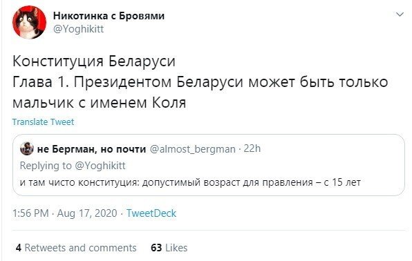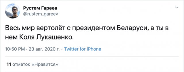 Николай Лукашенко в остатнее времена стал популярнее своего родителя. В минувшие выходные он тоже отличился - взял в десницы машина и взялся на публике в абсолютной военной амуниции. Пользователи не могли не отметить этот факт и пошутили про сына президента Беларуси Александра Лукашенко. Кстати, в сети его величают "сексихат картофелька".