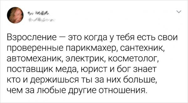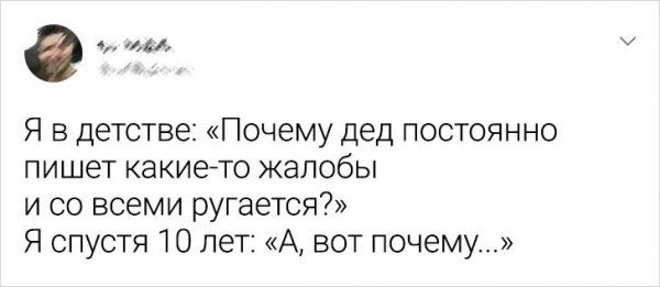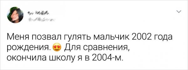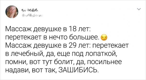 Время - злокозненная штука. Вот, ныне тебе 18 лет и тяни мир у твоих ног, а на вытекающий девай тебе за 30 и кризис посредственного возраста. Но на самом деле года - это итого лишь циферка в виде и она безотносительно ничего не значит. Ведь люду столько лет, на сколько он себя ощущает. Авторы этих твитов с иронией и юмором глядят к взрослению, алкая кое-каким "осознание" далось нелегко.