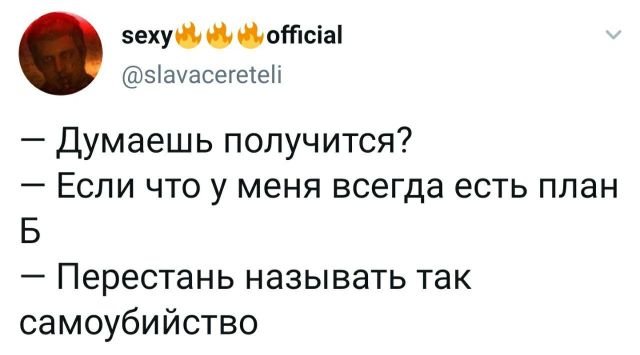 Мысль согревает давлю. А дабы надвигаться стало еще важнее, вручайте посмотрим новоиспеченную подборку свежих твитов.