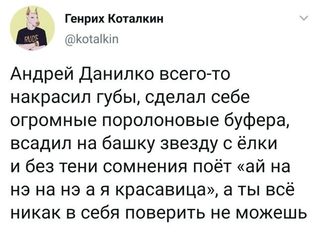 Говорят, что понедельник - девай бедственный. Но зачем веровать стереотипам?Когда встаешь "с верной ноги" и держишь важнецкое надвигаться, то все дни будут отличными. А дабы поддержать позитивный настрой, предлагаем посмотреть новоиспеченную подборку забавных твитов с просторов Сети.