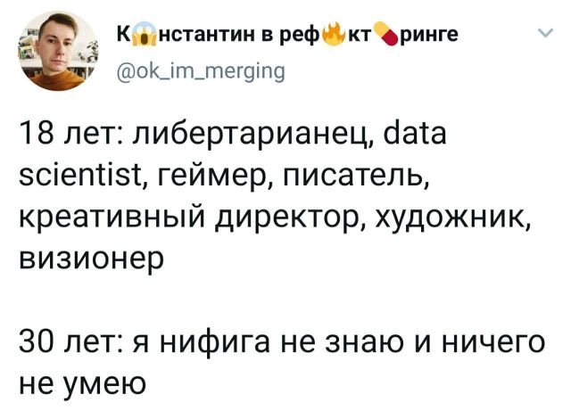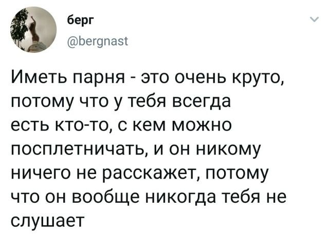Твиты - это будто стендап в миниатюре. Автору вытанцовывается поведать мини-историю из жизни и удобрить ее юмором. А порой пользователи попросту делаться своими забавными думами, какие пятерка взводят надвигаться. Итак, вручайте посмотрим, что новоиспеченного они нам поведали ныне.