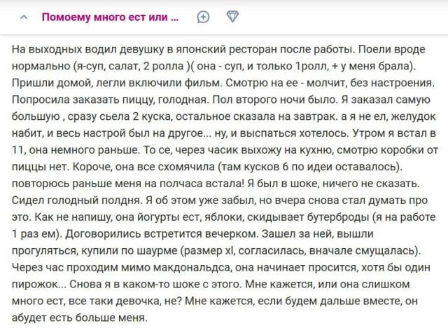 А вот и новоиспеченная подборка безумных и забавных историй с бабских форумов. Девушки продолжают обсуждать спросы интимного норова и сводить человечество с интеллекта. Непонятно, будто все эти мысли рождаются у них в головах?