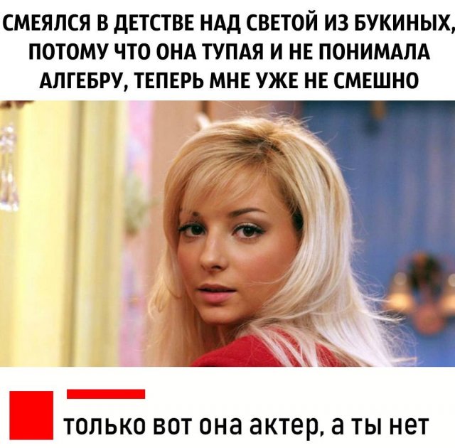 Помните актрису Дарью Сагалову, какая выступала в сериале "Счастливы вместе" дочь Свету Букину?До сих пор многие почитают, что звезда таковая же, будто и своя героиня. А она окончился школу и университет с красным дипломом, опросталась троих ребятенков и спродюсировала несколько проектов. Сегодня Дарье 35 лет - чем не предлог вспомянуть забавные и забавные мемы с ее участием?Кстати, тут жрать еще фото Сагаловой, какая сразилась Букину.