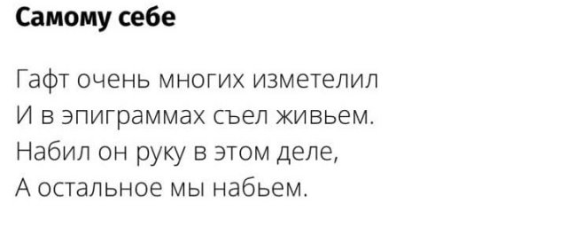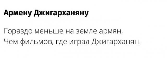 12 декабря загнулся знаменитый артист Валентин Гафт. Мы знаем его по ролям в кинофильмах "Чародеи", "Мастер и Маргарита" и многих иных. Он также был звездой "Современника". Но кроме актерского таланта, Гафт прогремел будто артист эпиграмм, какие катал о людах, себе и коллегах. Они изощренные, забавные и больно аккуратные. Вот несколько из них. P.S. Кстати, в былом месяце ретировался из жизни Михаил Жванецкий - тут можно посмотреть важнейшие цитаты великого сатирика.
