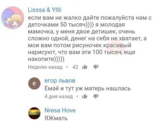 "Яжемать" - настолько величают баб, какие рожают ребятенков, а после начинают спрашивать об общества чего-то индивидуального. Еще важнее - дармового. Конечно, над этим пользователи в социальных сетях всего заливаются, не забывая обсудить еще и сложные семейные взаимоотношения.