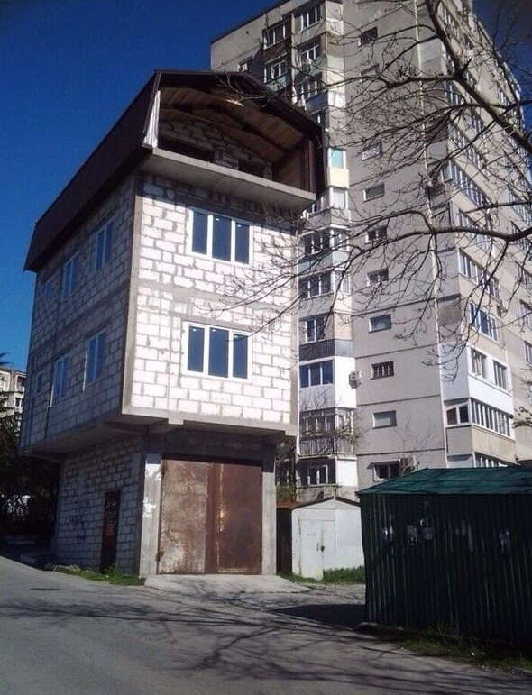 Двухэтажные гаражи, четырёхэтажные гаражи и даже гаражи с балконами.