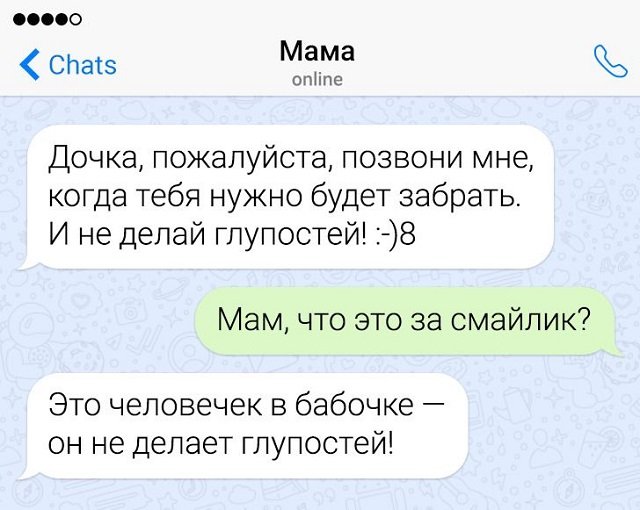 Молодежь дробно по-доброму подшучивает над своими родителями, необычно, когда выговор заходит о каких нынешних трендах и технике. До сих пор многие папы и мамы(и тем более бабки и дедушки)содрогаются от слов таковских, будто "месседжеры", "соцсети" и настолько дальше. Но стоит им постичь эту науку, игра переворачивается и уже родители начинают подкалывать своих чад.