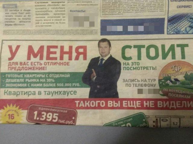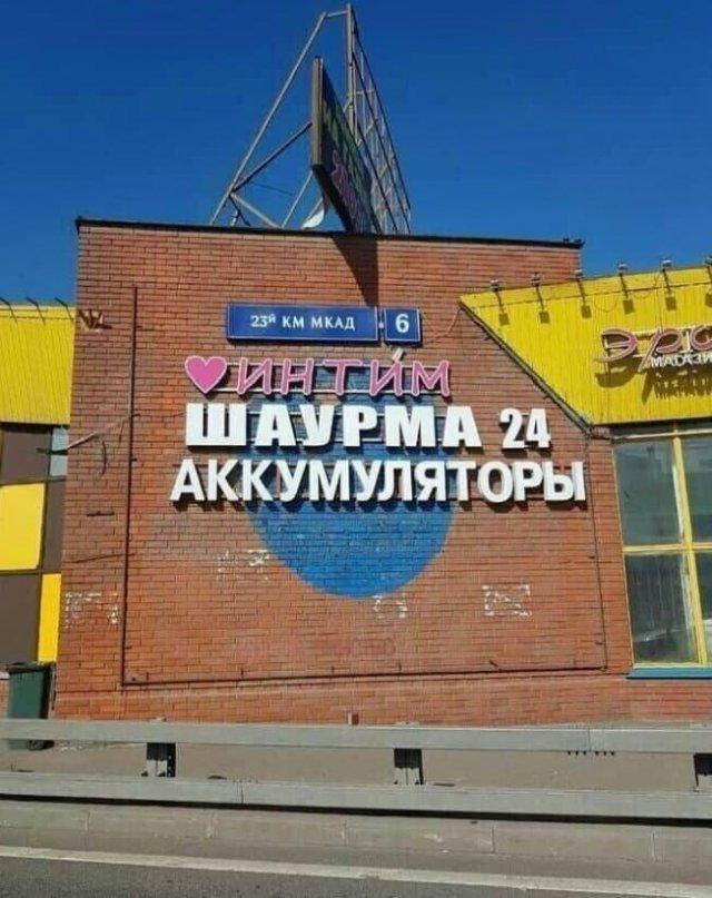 Предприниматели, в обстоятельствах капитальной конкуренции, обращаются за поддержкой к дизайнерам рекламы и маркетологом. И те, норовя выказать все свое мастерство, временами образовывают подобные "шедевры" - будет диковинные и забавные.
