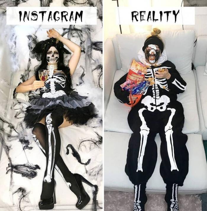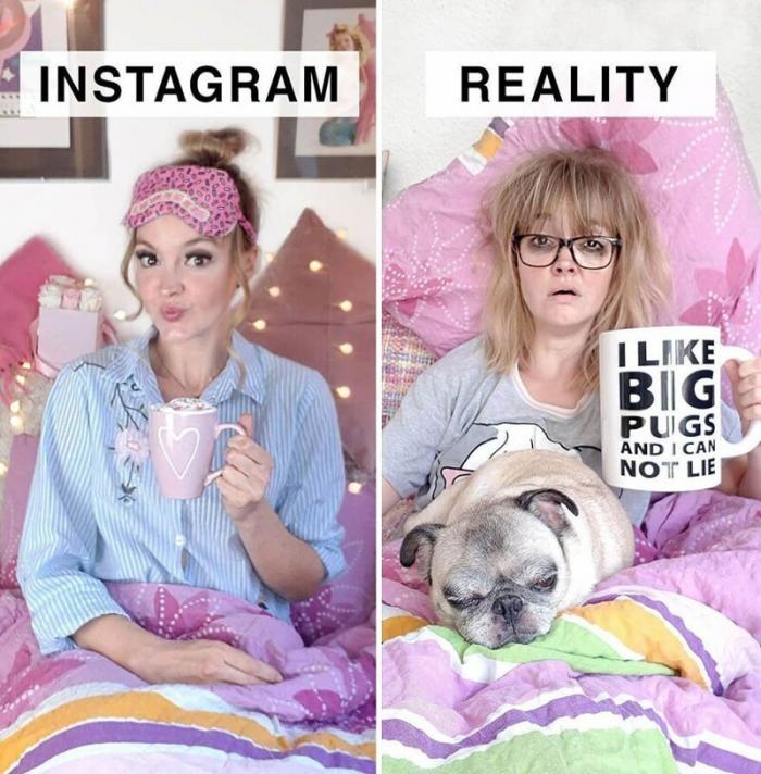Популярный блогер Джеральдин Уэст веселит своих подписчиков картинками из серии "Инстаграм и реальность". Она беззлобно подшучивает на стремлением людей публиковать всего "причесанные", безупречные снимки, и демонстрирует, будто бы выглядели социальные сети, будь их пользователи беспорочнее сами с собой.