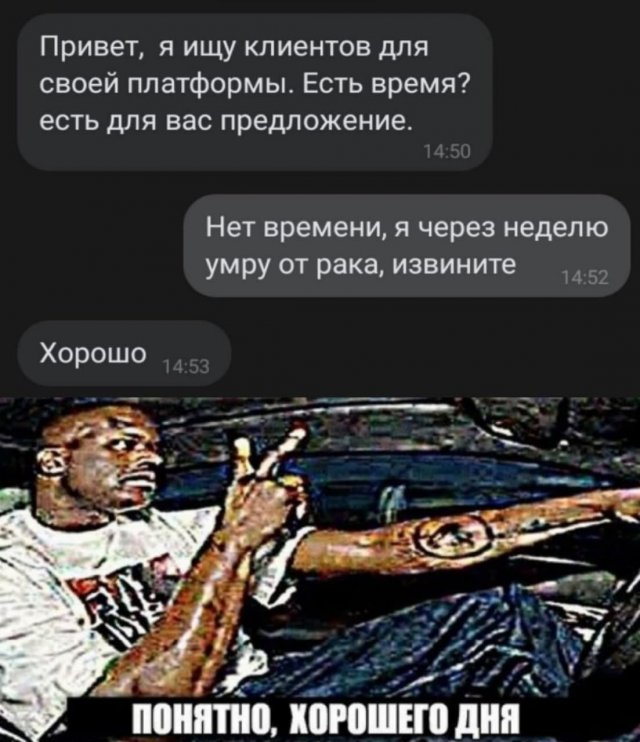 Есть, безусловно, люд, какие выговорят, что все эти шутки - или безголовые, или аморальные и безжалостные. Но, жрать и иные пользователи, какие век держат жизнелюбие и позитивный настрой. Если вы глядите ко другой категории и можете оценить диковинный и агатовый юмор, возвысив себе надвигаться - добросердечно пожаловать!