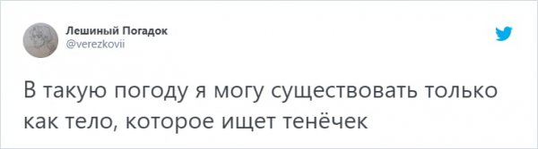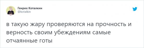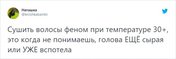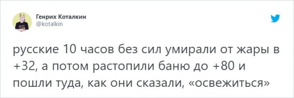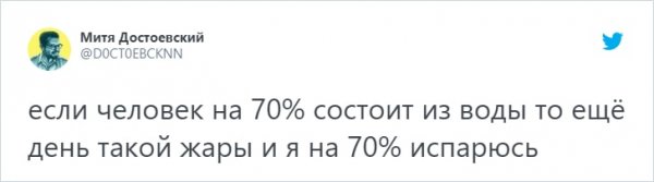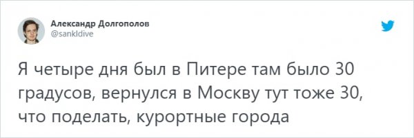В Москве и Санкт-Петербурге изводятся от жуткой жары, какая гвоздит все рекорды. А в Твиттере все будто всегдашне, народ продолжает подсмеиваться всем бедам н/азло. Давайте спрячемся под кондиционером и возвысим себе надвигаться в новоиспеченной подборке твитов.