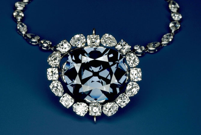 Согласно одной из легенд, французский торговец Жан-Батист Тавернье стянул этот 115-каратный голубой бриллиант из индийского храма, после чего был насмерть затравлен собаками. Но на деле охотник за драгоценностями приобрёл алмаз в султанате Голконда, Центральная Индия, тайно вывез его из страны, после чего в 1669-м году доставил камень к французскому двору, где его перекупил «Король-Солнце» Людовик XIV.