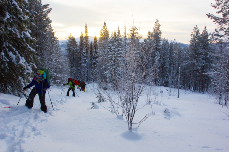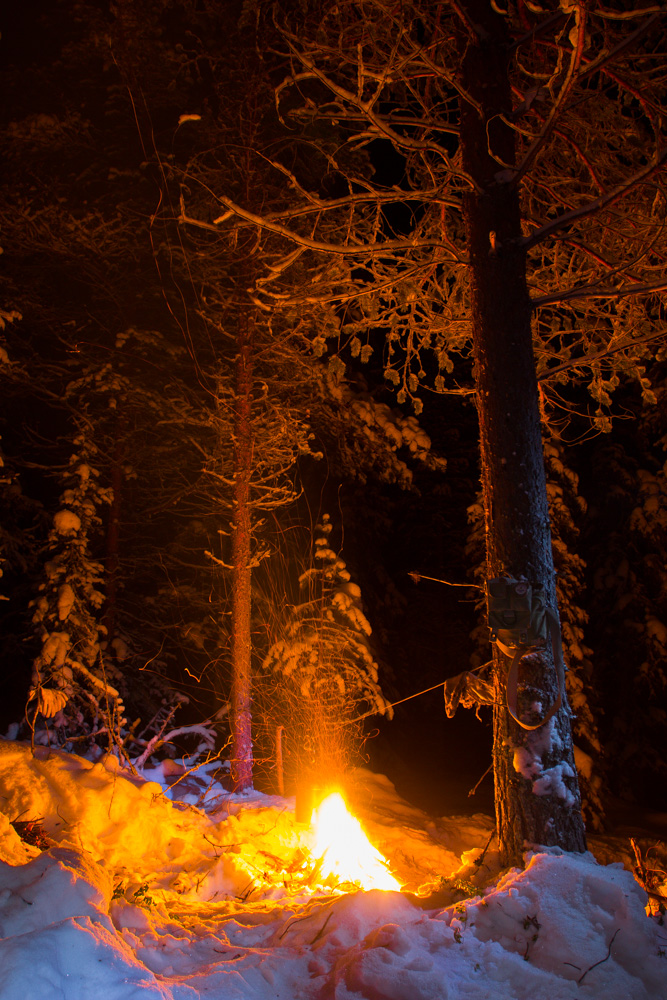 Дальше мы пошли в сторону хребта, всё время плавно набирая. На этой вечерней стоянке часть группы осталась ставить лагерь, часть ушла за дровами, а двое ушли тропить. Это был первый вечер, когда мы ломали ветки, а не рубили дрова, рядом не было крупных сушин.