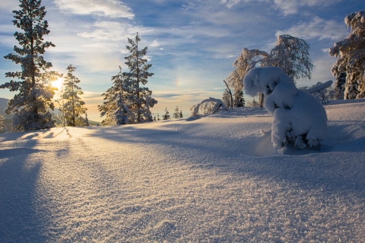 Еще летом 2012 путешествуя по Хибинам, я отметила, что зимой под снегом эти изгибы будут невероятно красивыми. И вот наконец мы замахнулись на Кандалакшские тундры. Горы невысокие, но особенности рельефа и растительности делают их очень живописными.